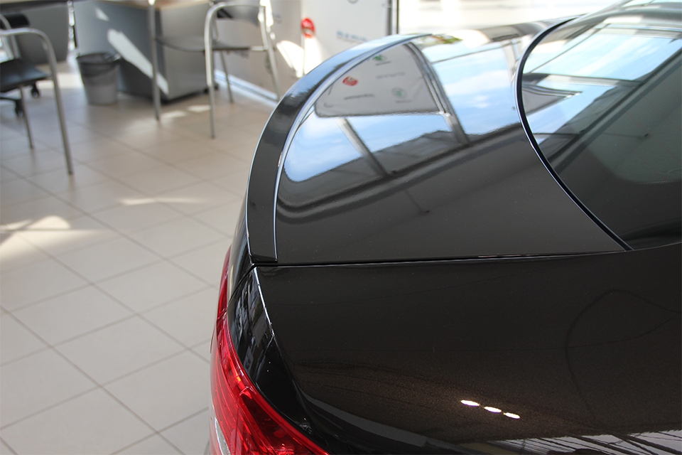 Помимо прекрасных эстетических качеств, данный спойлер на Шкоду Супер Б способствует дополнительному обтеканию воздушным потоком и увеличению прижимной силы автомобиля. Тем самым значительно улучшаются аэродинамические характеристики авто.