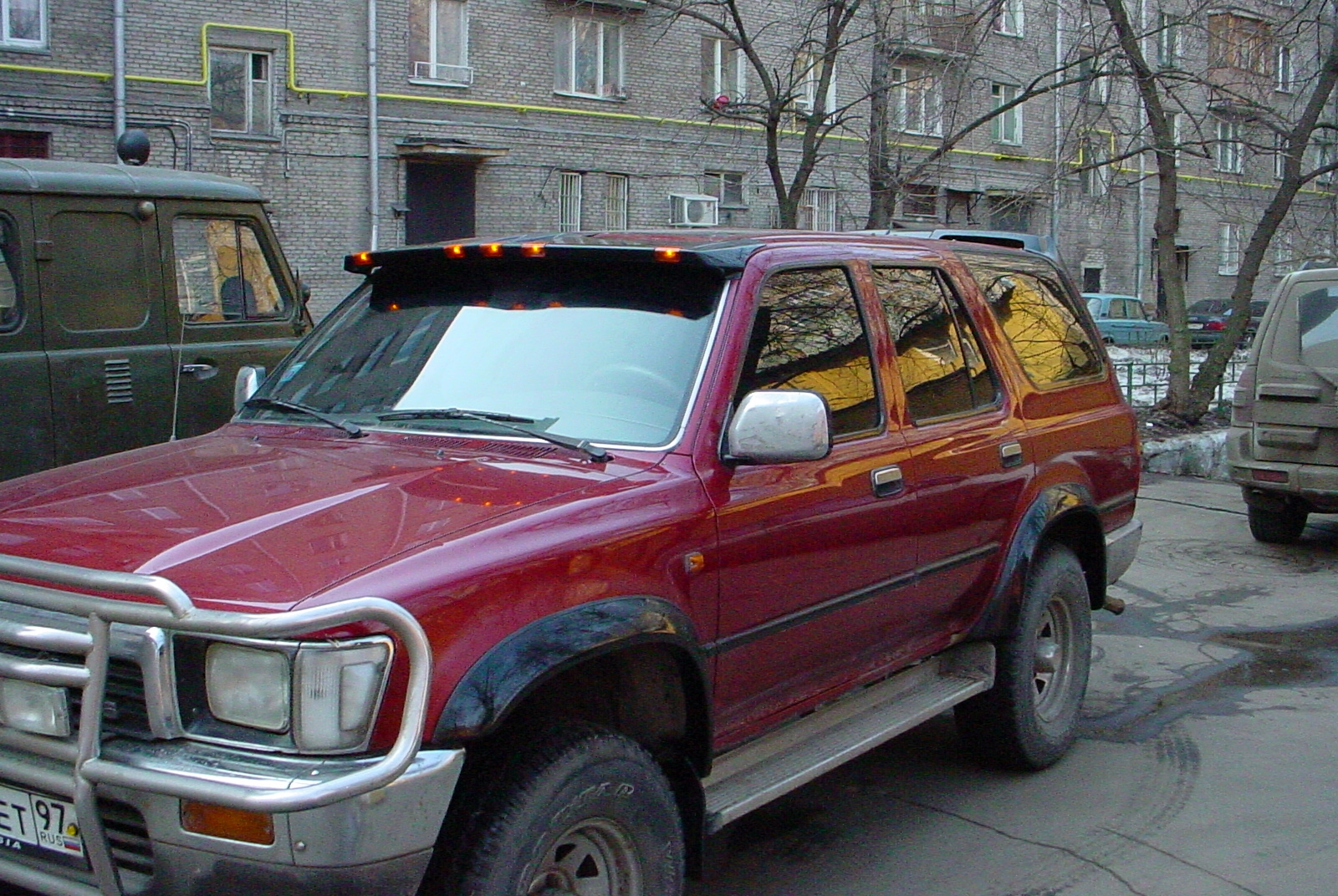 Популярным видом тюнинга кузова авто является козырек над лобовым стеклом. Данная деталь дополняет визуальное восприятие автомобиля, придавая кузову более изящные формы, а также способствует более комфортному вождению как днем, так и ночью. Козырёк (дефлектор) над лобовым стеклом для автомобиля Toyota 4Runner изготавливается из высококачественного стеклопластика - FRS, позволяющего сделать солнцезащитное приспособление легким, обтекаемым, с отличным дизайном. Козырек верхний для Тойота 4Раннер устанавливается на лобовую часть крыши автомобиля. При монтаже козырька возможна его небольшая корректировка. Козырек на лобовое стекло Тойота 4RUNNER крепится на болтах и на специальном клее-герметике. Поставляется под покраску. Стоимость детали - 6500 рублей, вы также можете заказать у нас установку и покраску. Габаритные огни приобретаются дополнительно. Для консультации со специалистами используйте контактные данные указанные ниже.