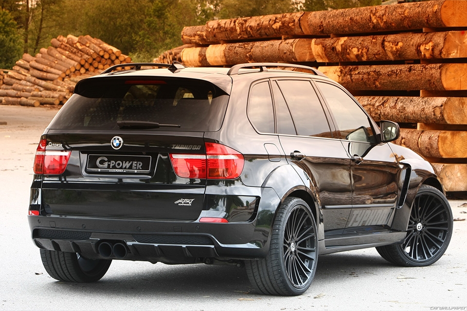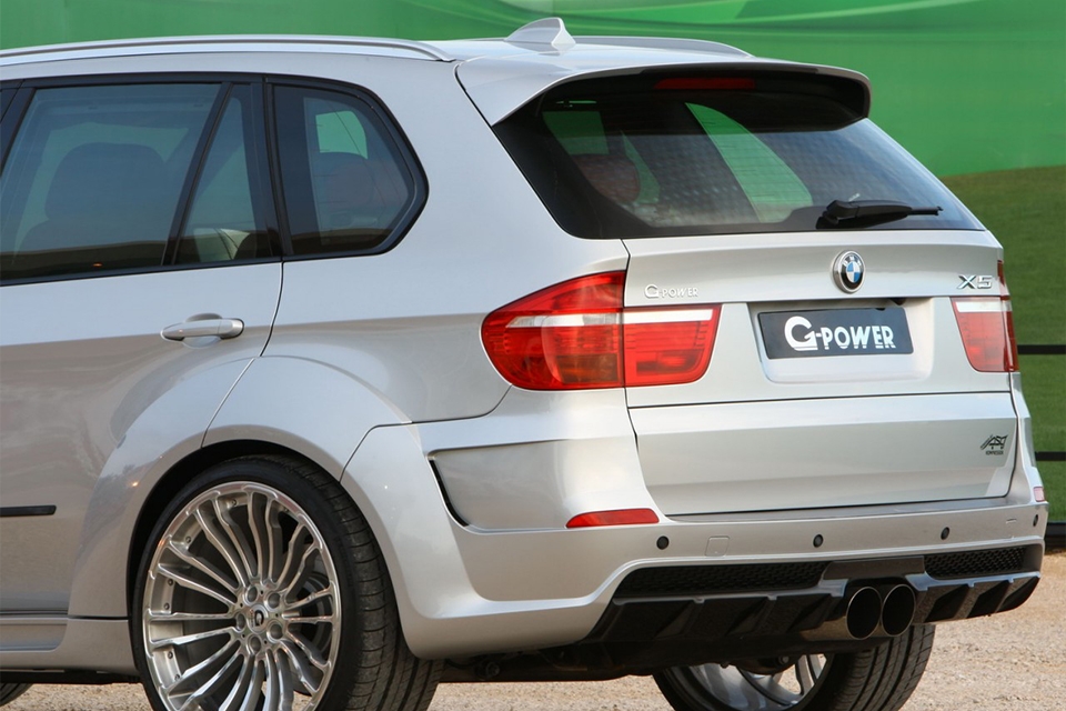 Обвесы G-Power Typhoon имеют расширители колёсных арок, переднего и заднего бампера, боковые пороги с накладками из нержавеющей стали и светящимся логотипом G-POWER. При желании устанавливается капот с дополнительными воздухозаборниками G-POWER.В передний бампер встроены светодиодные лампы. В боковых порогах вставлено освещение зоны входа-выхода пассажиров. В центре заднего бампера установлены насадки диффузоров выхлопной системы, также по желанию заказчика можно установить диффузоры из полированной нержавейки с вороненными наконечниками или вороненные трубки с полированными наконечниками. Вместо штатного глушителя устанавливается спортивный глушитель. В зоне разгрузки погрузки багажного отделения возможна установка подсветки. Дополнительно предоставляются проставки под колёсные диски.
