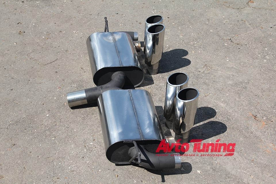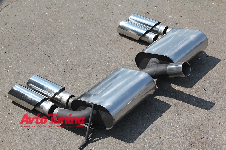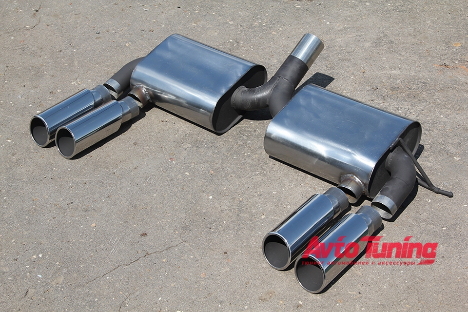 Глушитель с раздвоенным выхлопом для BMW X5M E70 от компании . Четыре оконечных патрубка диаметром 90 мм. каждый. Устанавливается в замен штатного. Все изгибы точно подобраны чтобы точно соответствовать оригинальным местам установки. Труба изготовлена из сверхпрочного металла с толщиной стенки 1,5 мм. В комплекте 2 глушителя.